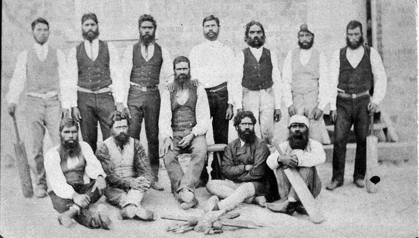 Around ten years before this photograph was taken, in 1868, a team of 13 Aboriginal men from the western district of Victoria became the first ever Australian cricket team to travel overseas for a series of matches.