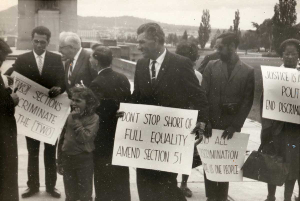 Activists at a demonstration supporting the 1967 Referendum, Parliament House