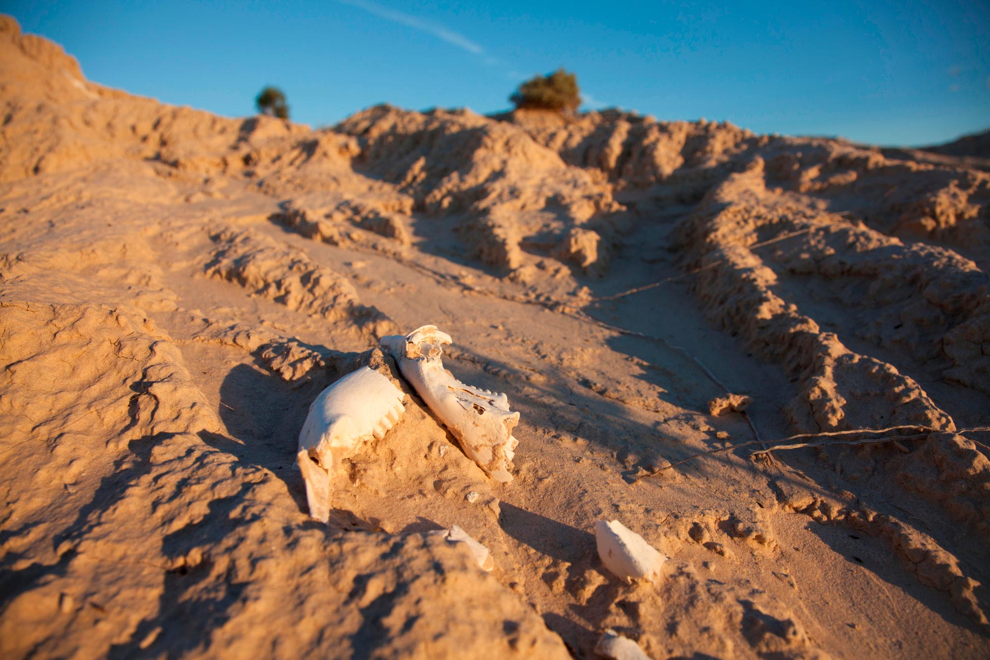 Animal bones emerging from the Lake Mungo lunette
