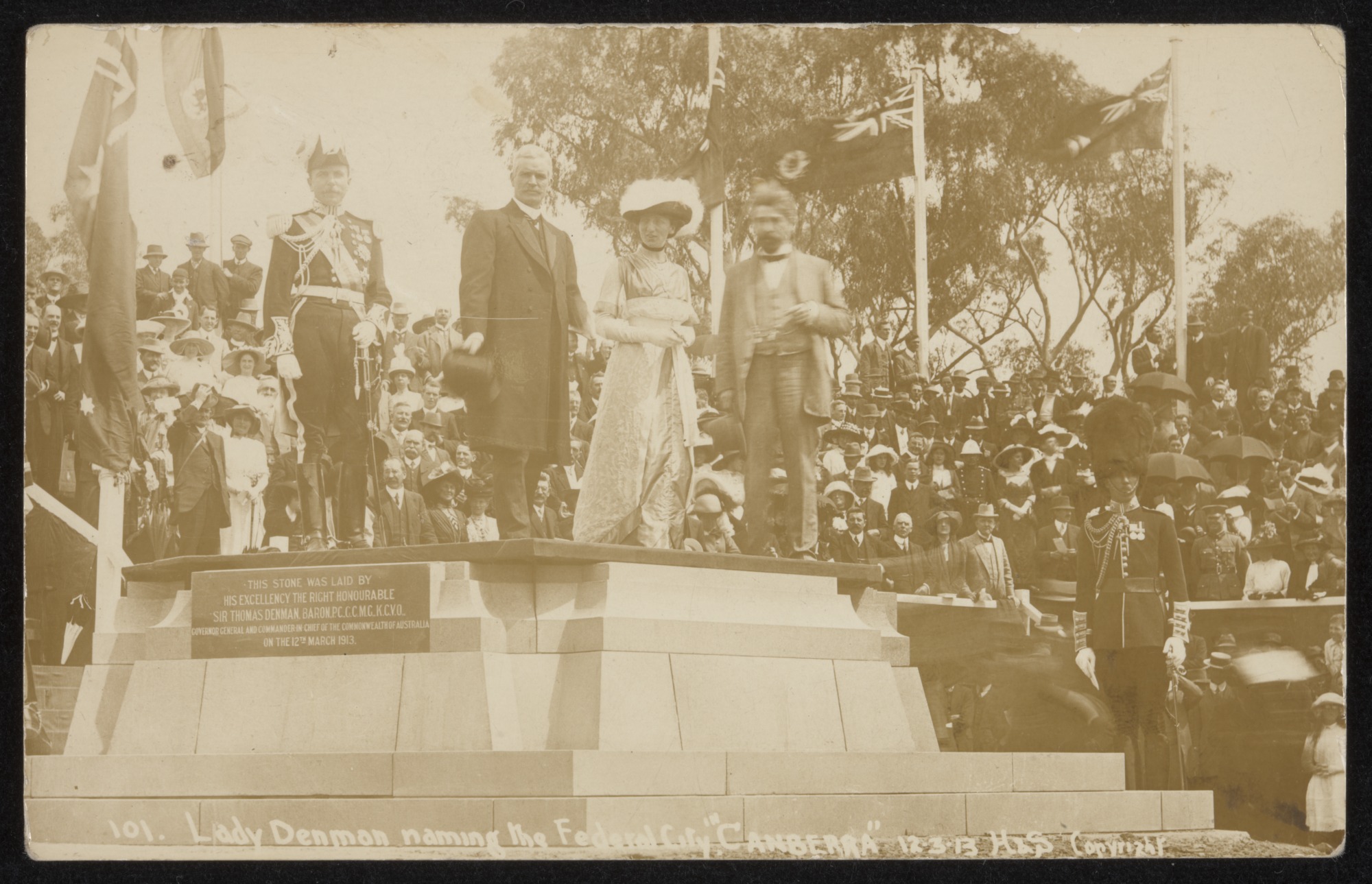 On 12 March 1913 the Governor-General’s wife, Lady Denman, announced that Canberra was the name of Australia’s new national capital. About 500 guests, 2000 mounted troops and 3000 observers were present.
