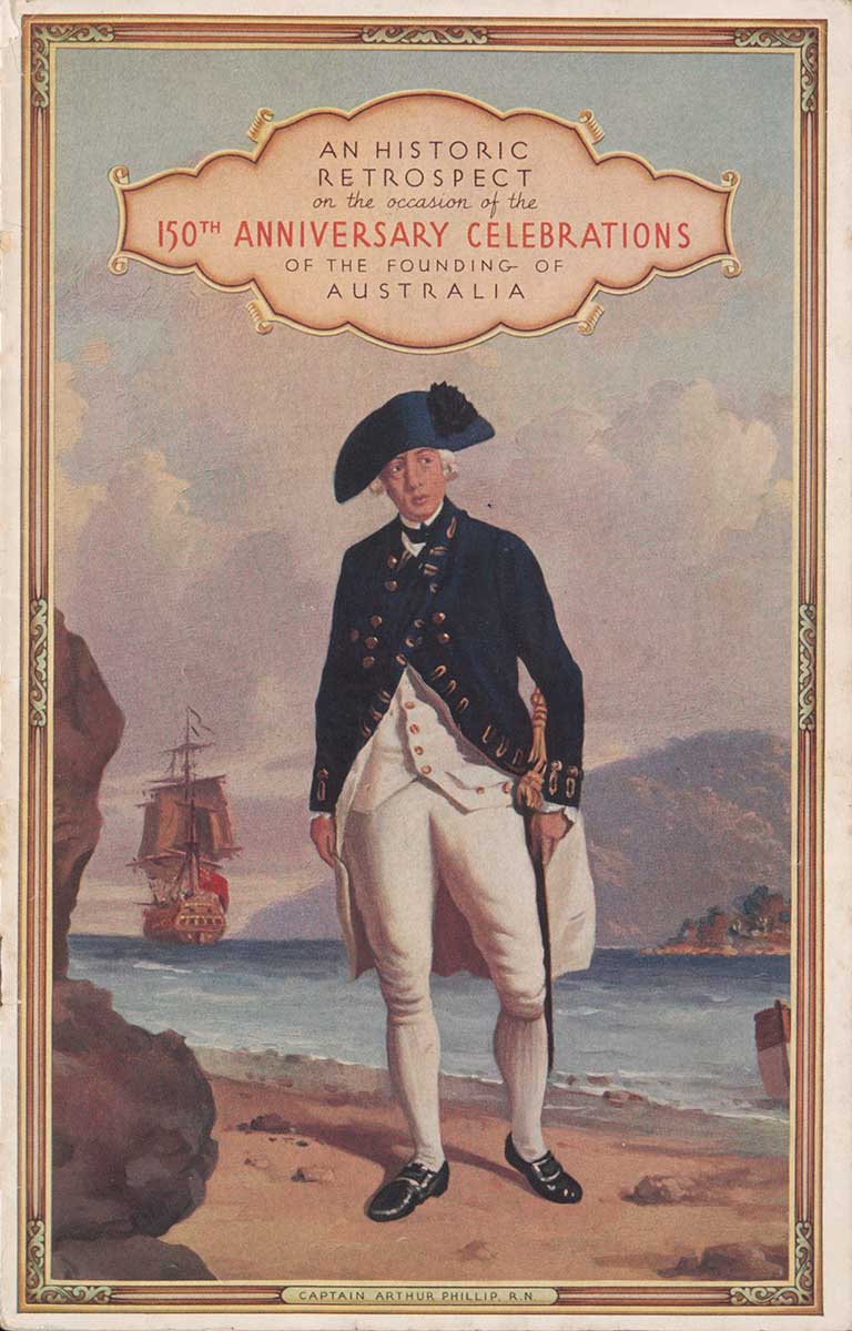 Colour publication printed for the 150th Anniversary Celebrations of Australia, 1938. Captain Arthur Phillip is featured.