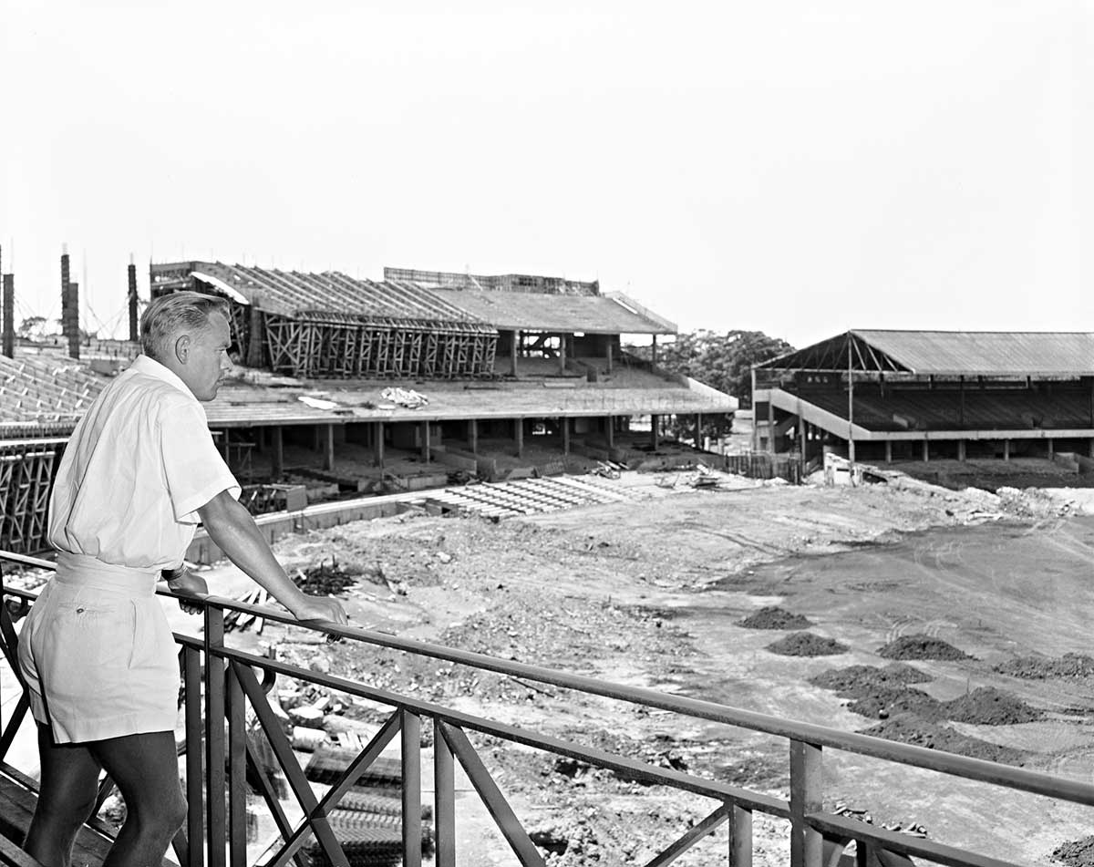 Construction underway at the Melbourne Cricket Ground for the 1956 Olympics