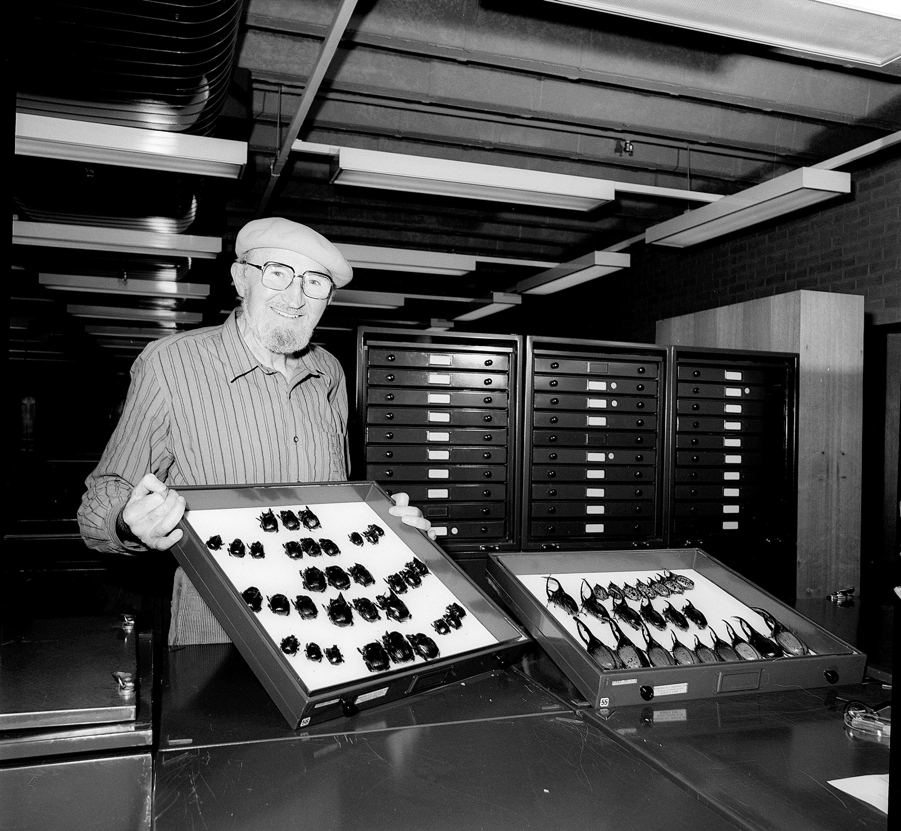 Dr George Bornemissza with dung beetle specimens