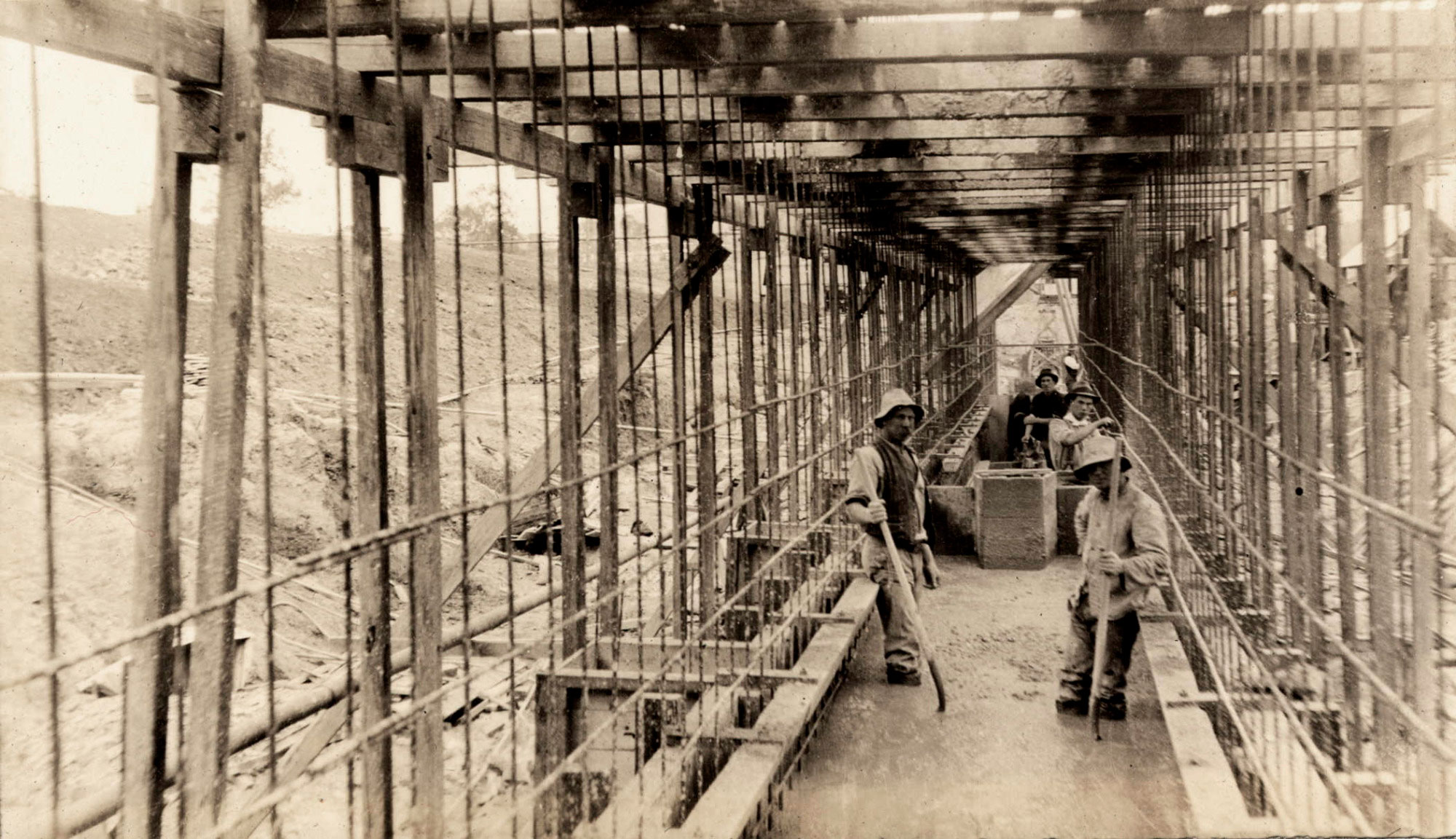 Work on the construction of the Hume Dam commenced in November 1919. The New South Wales Department of Public Works and the State Rivers and Water Supply Commission of Victoria acted as joint constructing authorities. Engineers EM de Burgh (New South Wales) and JS Dethridge (Victoria) headed up the project.