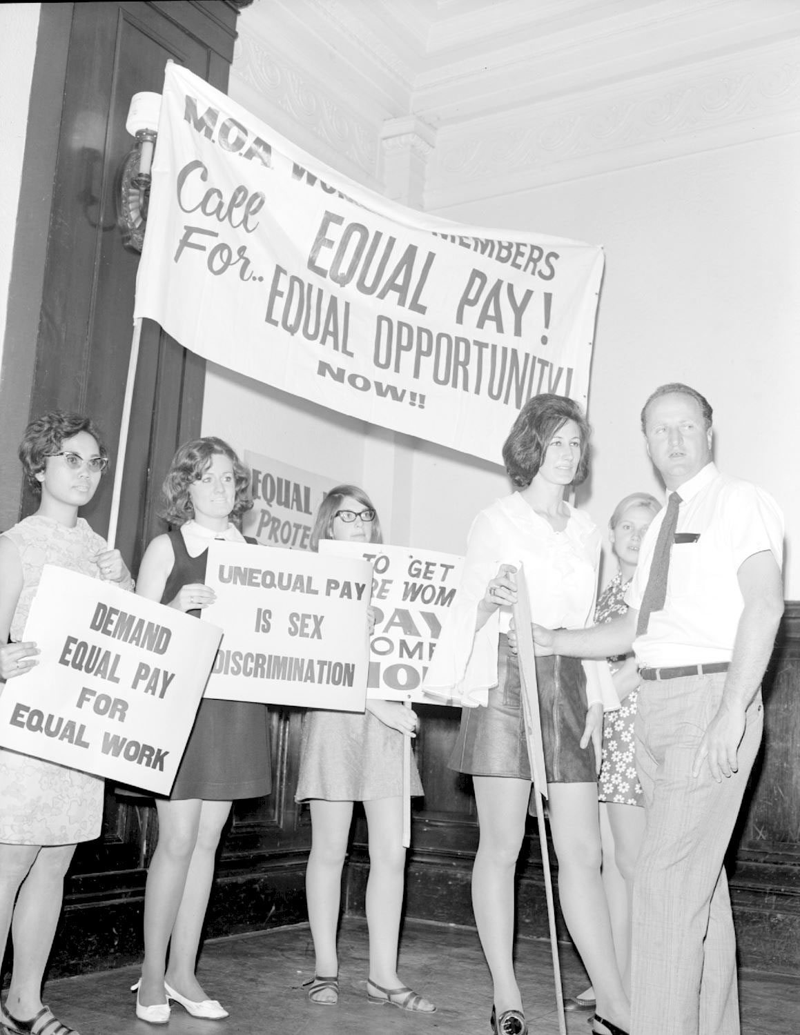 Equal pay protest, Melbourne Town Hall, 20 February 1969