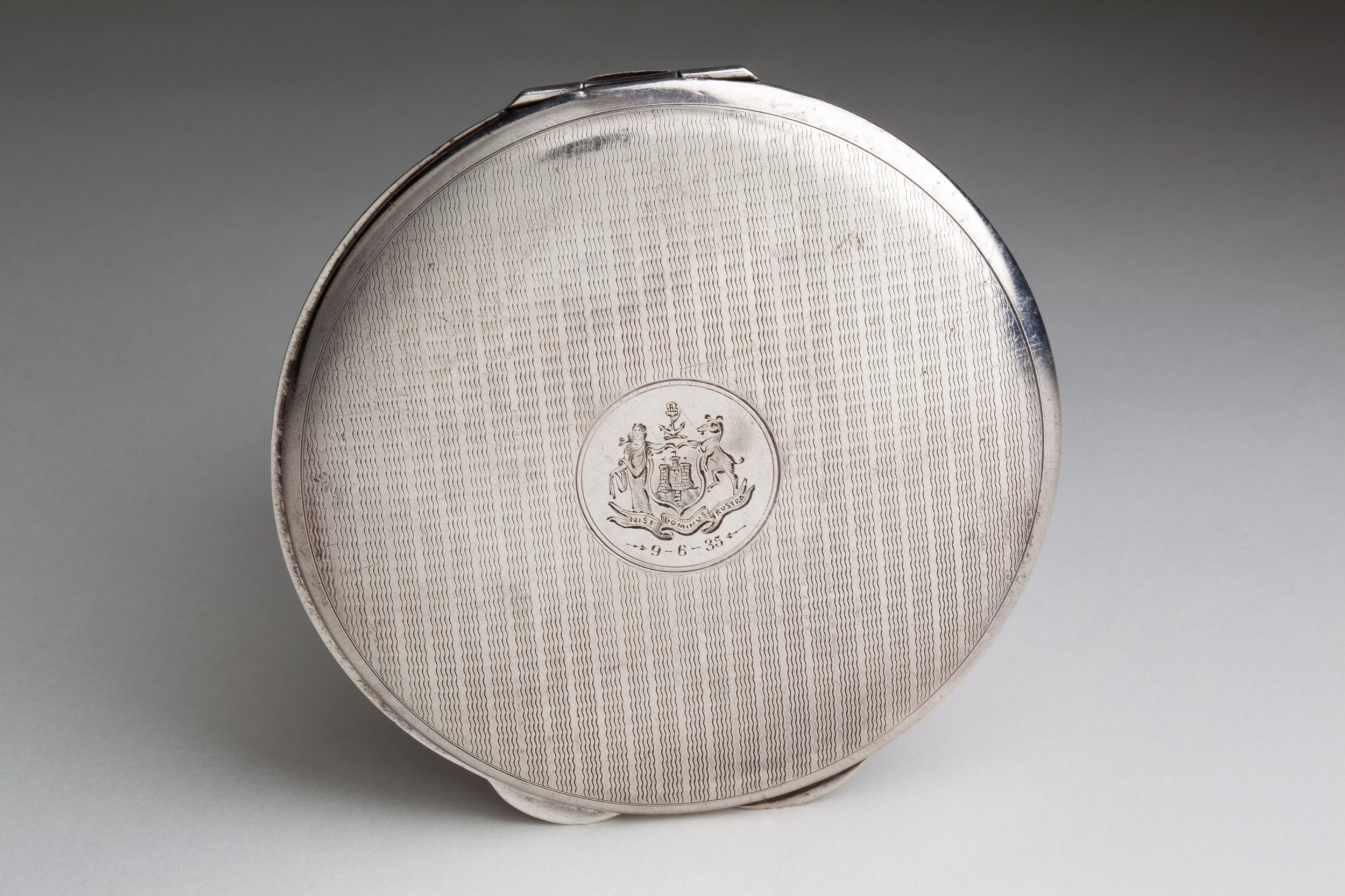 Face powder compact presented to Dame Enid Lyons