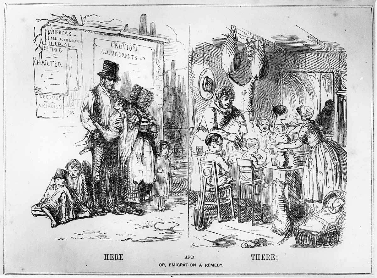 ‘Here and there; or emigration a remedy’, published in Punch magazine (London), 8 July 1848