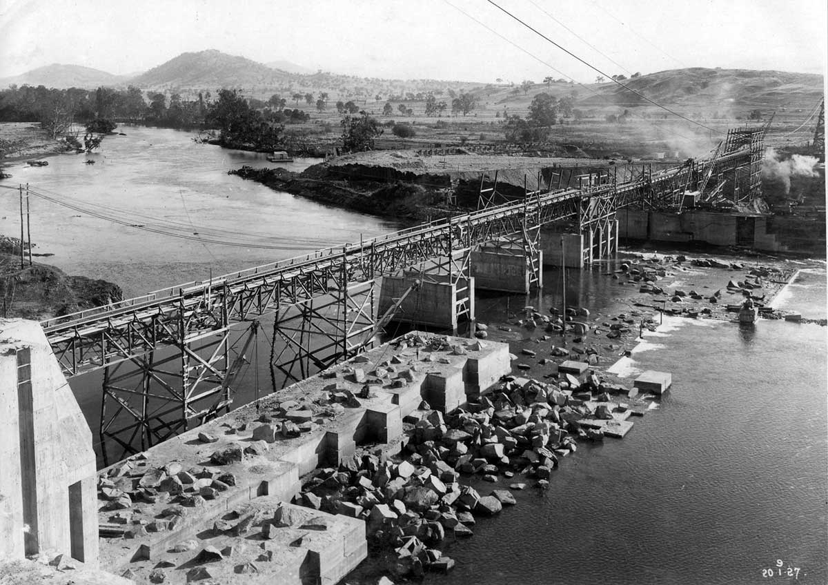 Work on the construction of the Hume Dam commenced in November 1919. The New South Wales Department of Public Works and the State Rivers and Water Supply Commission of Victoria acted as joint constructing authorities. Engineers EM de Burgh (New South Wales) and JS Dethridge (Victoria) headed up the project.