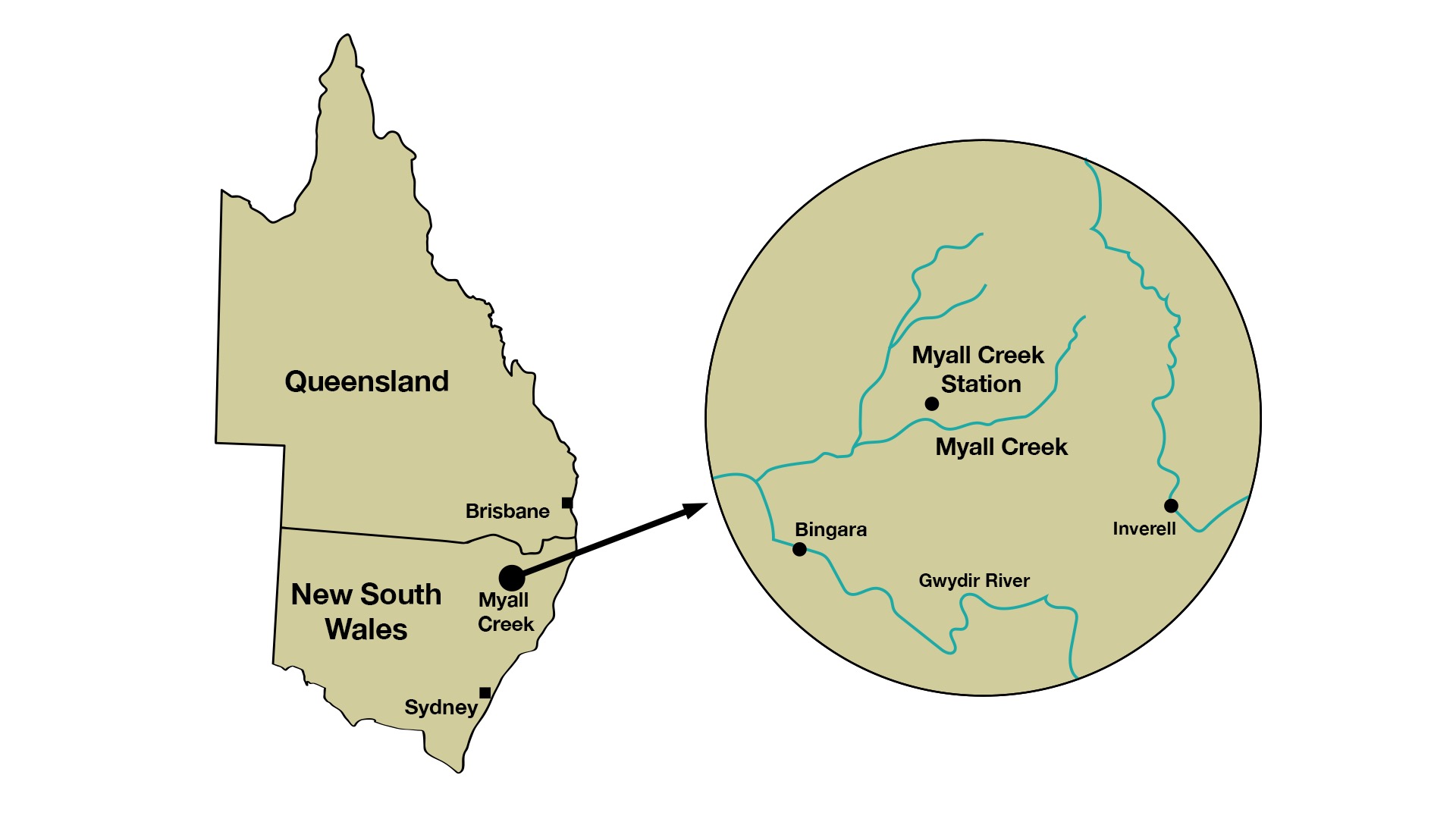 The location of Myall Creek Station, New South Wales