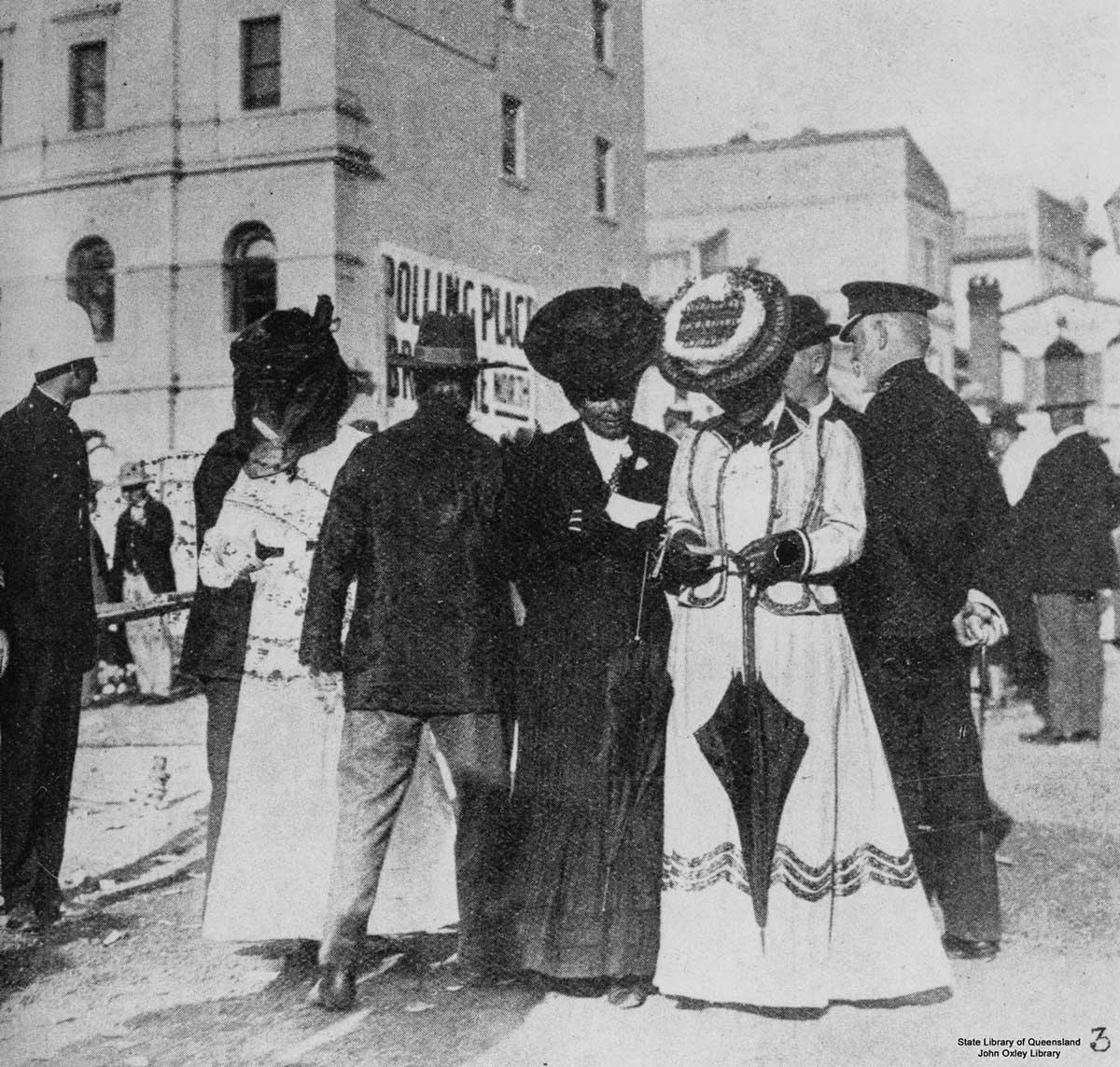 Men and women at a polling booth on Adelaide Street in Brisbane, 1907