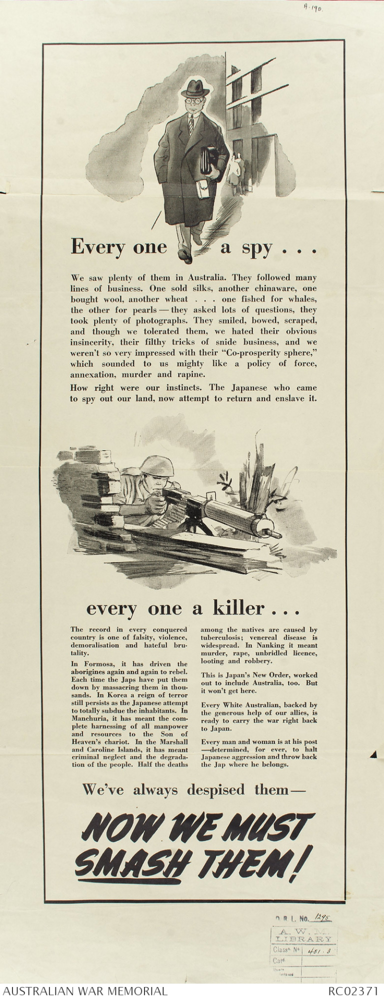 Leaflet using racially based propaganda to instil fear and hatred of the Japanese to encourage Australians to fight against them and support the war effort.