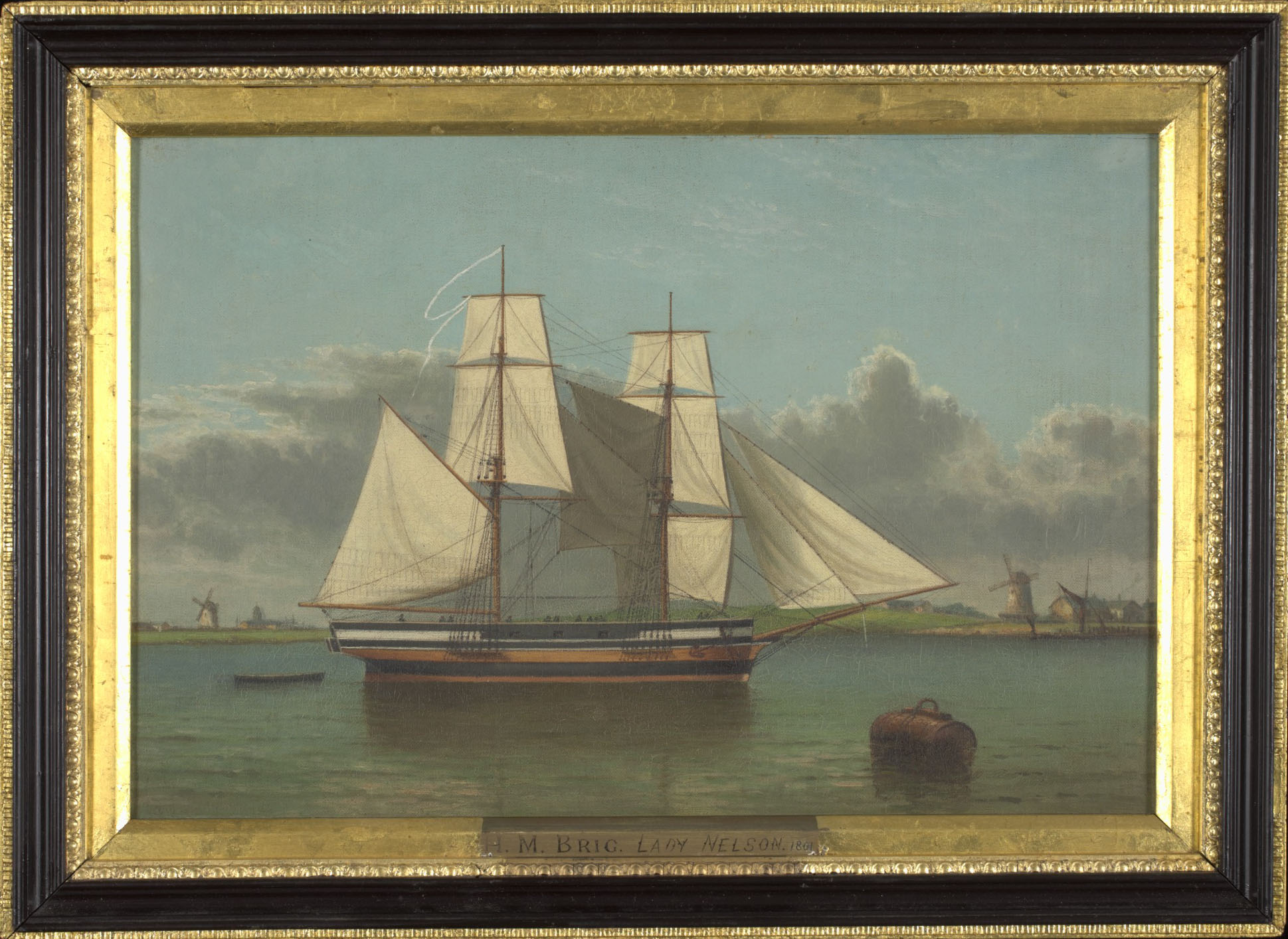 The Lady Nelson was built at Deptford in England in 1799 and selected by the Admiralty in 1800 to provide exploration services to the Colony of New South Wales. After an illustrious career as a survey craft, including its use by Lieutenant James Grant and Matthew Flinders (as an accompanying craft of HMS Investigator), and as a supply vessel, the Lady Nelson was seized by pirates off Timor in 1825. The crew were killed and the vessel scuttled at Baba Island. The historical significance of this painting covers three key themes: the ship's association with the settlement of Newcastle, Port Macquarie, Tasmania, Port Phillip and northern Australia; the importance of detailed surveying in the exploration of the Australian coastline; and the early efforts to exploit Australia’s natural resources, in particular the discovery of coal.