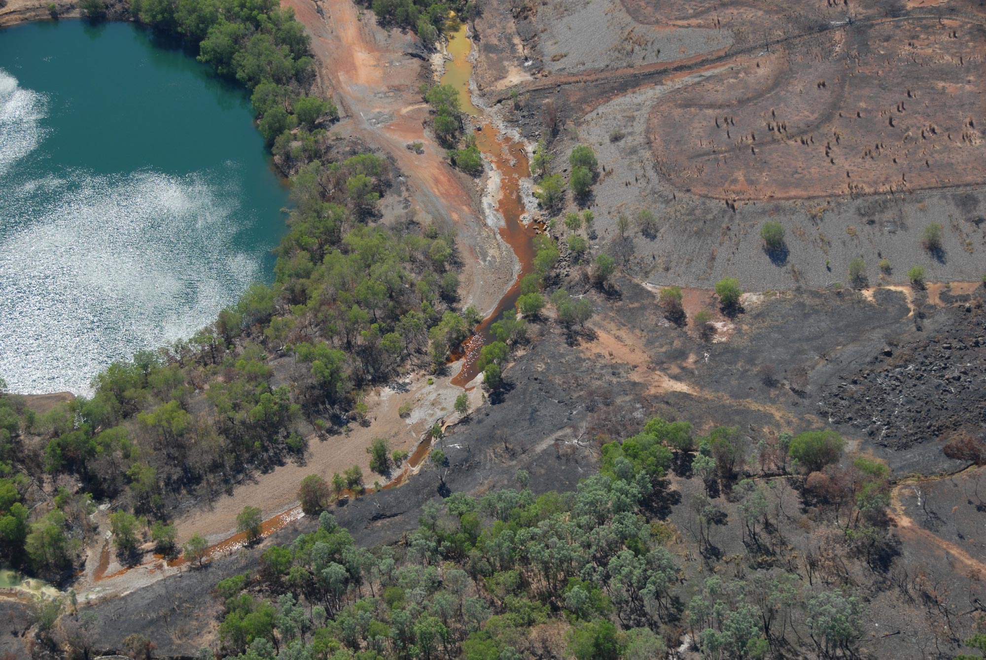 Pollution seeping from Rum Jungle uranium mine material, near the Finniss River