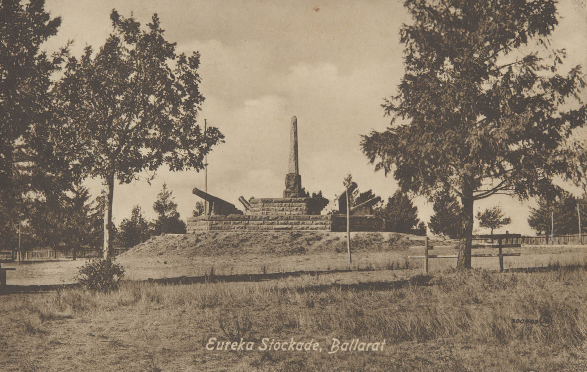 On 30 November 1854, miners from Ballarat in Victoria swore an oath to the Southern Cross flag at Bakery Hill and built a stockade at the nearby Eureka diggings. They were unhappy with the way the colonial government had been running the goldfields. Early on 3 December 1854, government troops attacked the stockade and at least 22 diggers and six soldiers were killed. The events at Eureka later led to changes in how people were governed as well as people’s attitudes towards democracy and ‘a fair go’.