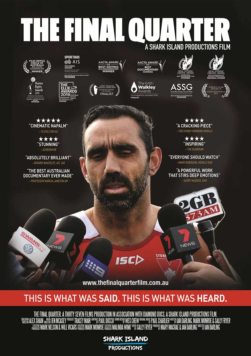 The Final Quarter documentary was released in 2019. It focused on the final stages of Australian Football League player Adam Goodes’ career, when he experienced racism and booing from spectators.