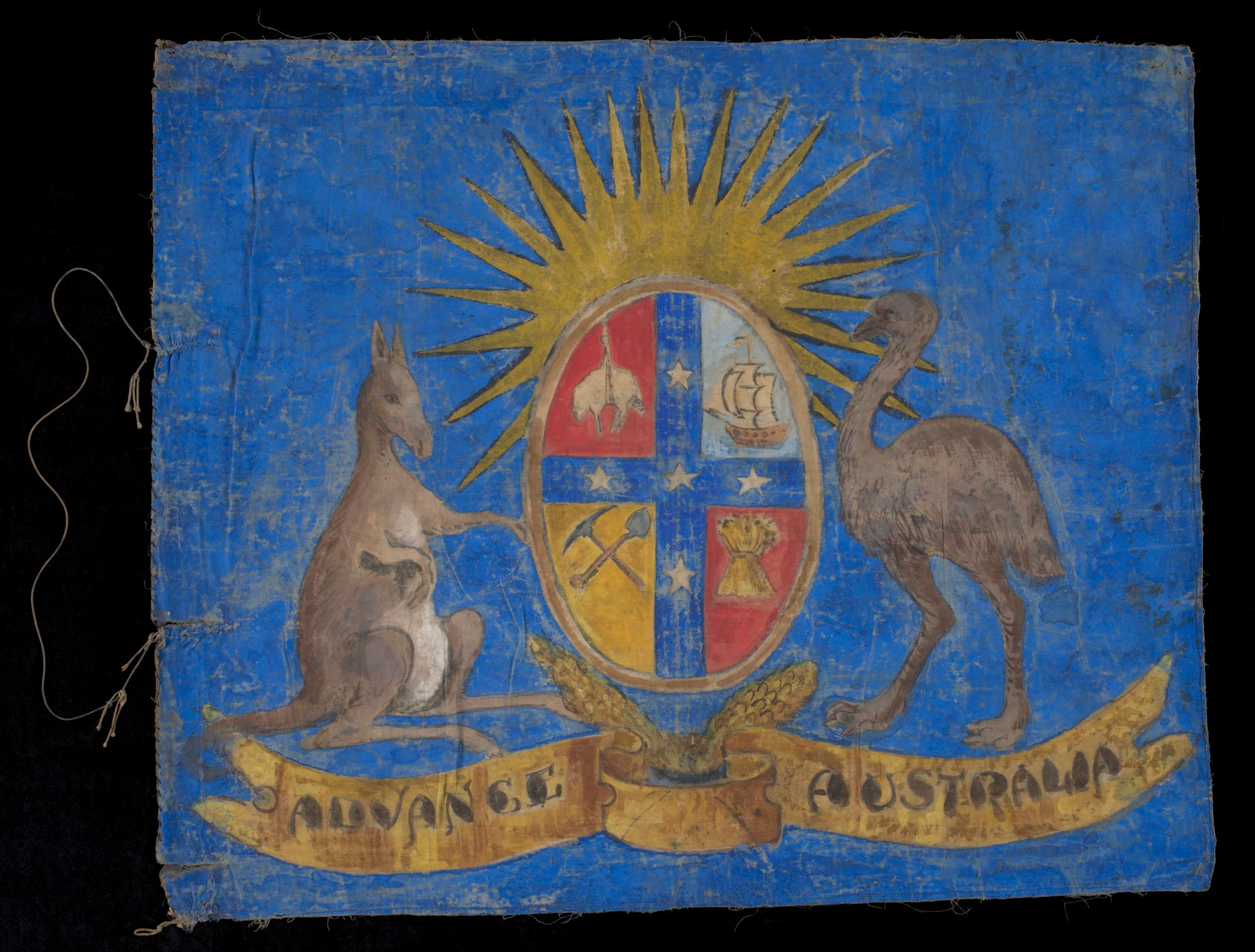 This flag was acquired from the direct descendants of Charles (Charlie) Thomas Lloyd (1858-1940), an Australian who went to the Klondike in northwestern Canada in search of gold in 1898. Lloyd and a group of six Australians commissioned the flag for their boat, the ‘Kangaroo’, which took them from Lake Bennett to Dawson City and the goldfields.