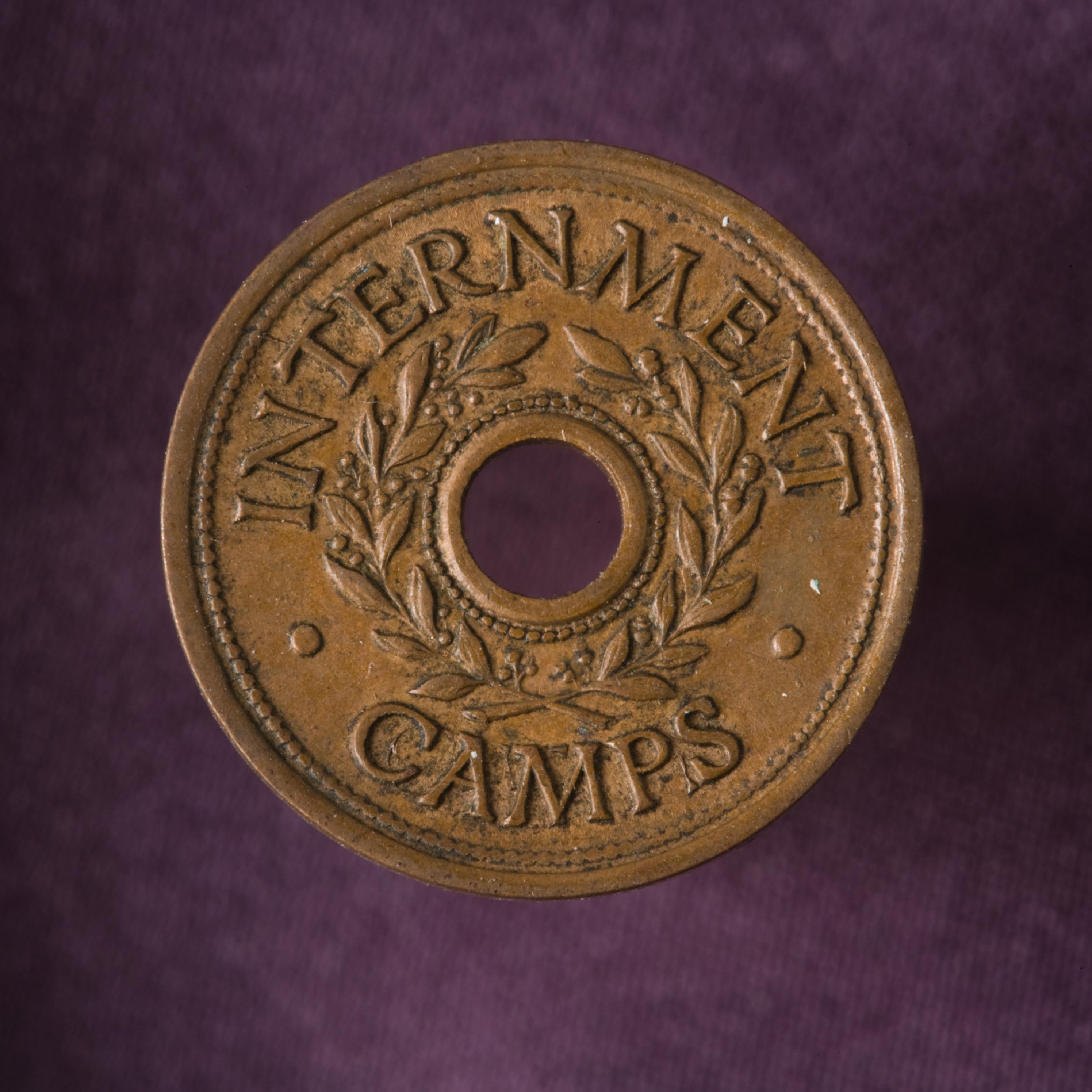 A bronze token issued by the Australian Military Board for use by internees in Australian and New Zealand internment camps from 1941–45. Internees were not allowed to use real money.