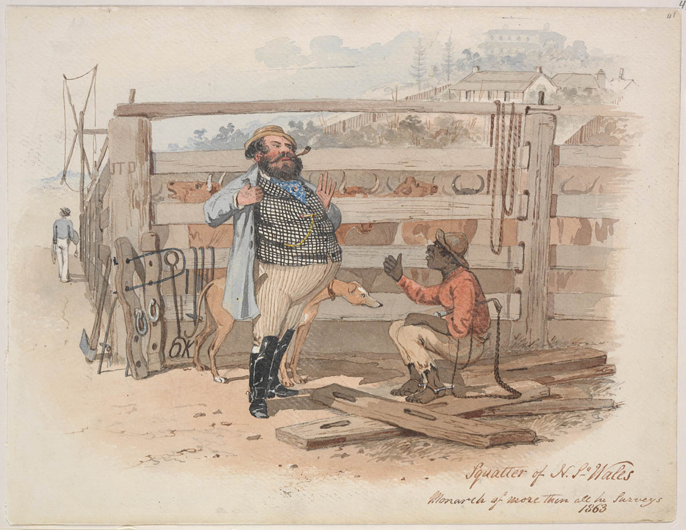 Squatter of N.S.Wales: Monarch of more than all he surveys, by Samuel Thomas Gill, 1863