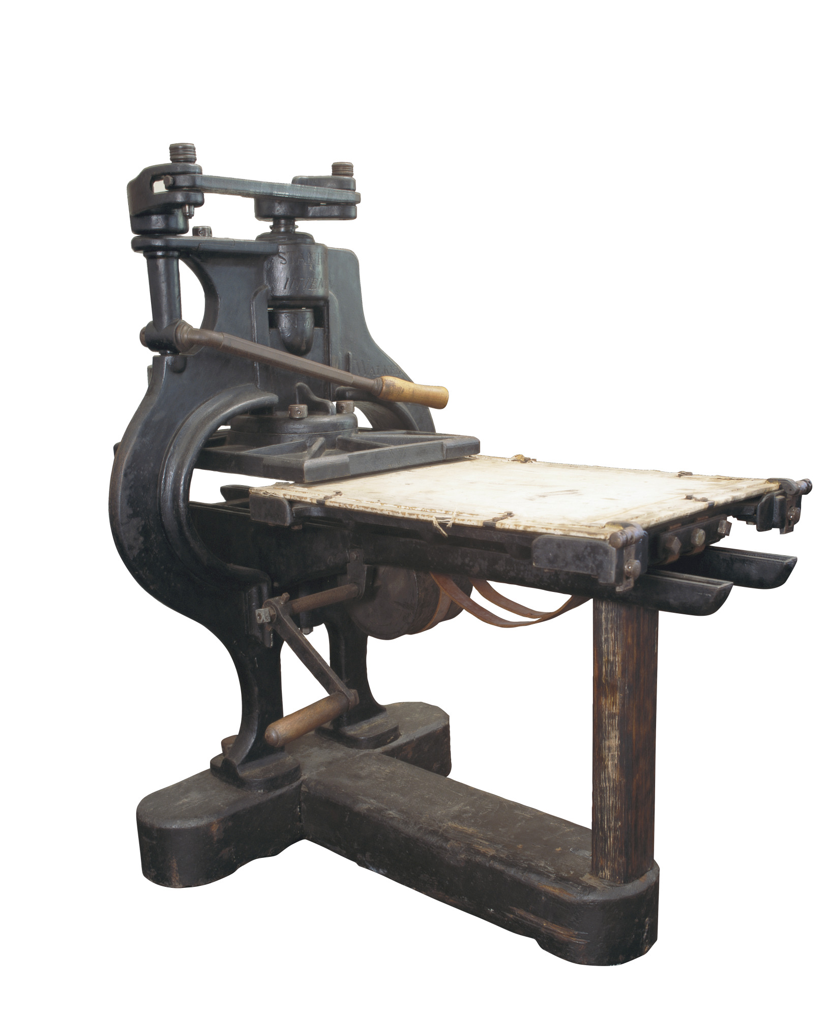 This cast iron Stanhope printing press was manufactured in the 1830s. In the 1930s, when it became part of the collection of the Tasmanian Museum and Art Gallery, it was thought to have been imported into the colony by convict and publisher Andrew Bent. Recent research, however, suggests that it is highly unlikely that Bent ever owned this Stanhope press or printed a newspaper on it.