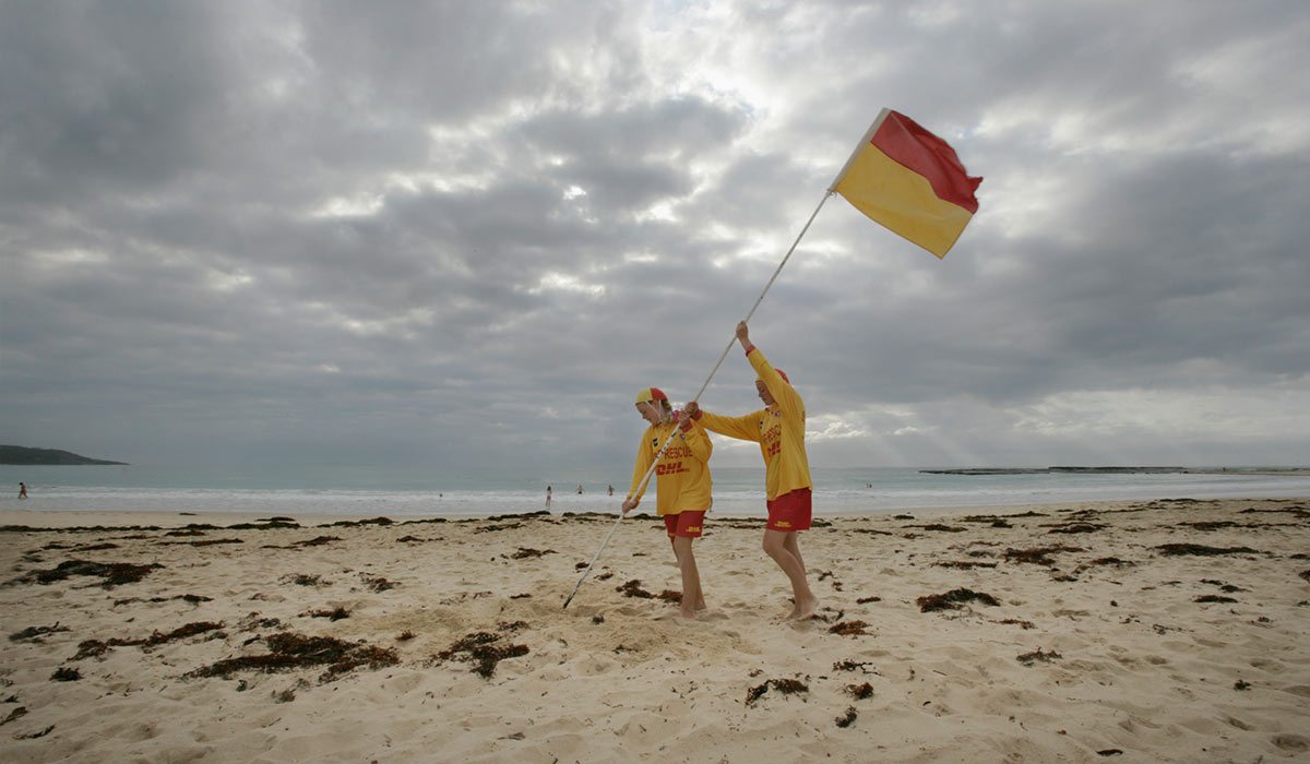 The first surf lifesaving club was founded at Bondi in February 1907 and several others were established soon after. The iconic red and yellow flags were introduced in 1935. Red and yellow caps became standard in 1939.