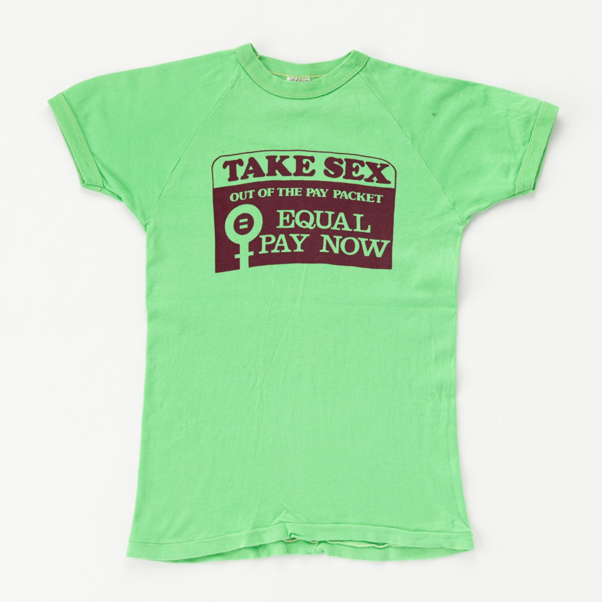 ‘Take sex out of the pay packet, equal pay now’ printed T-shirt
