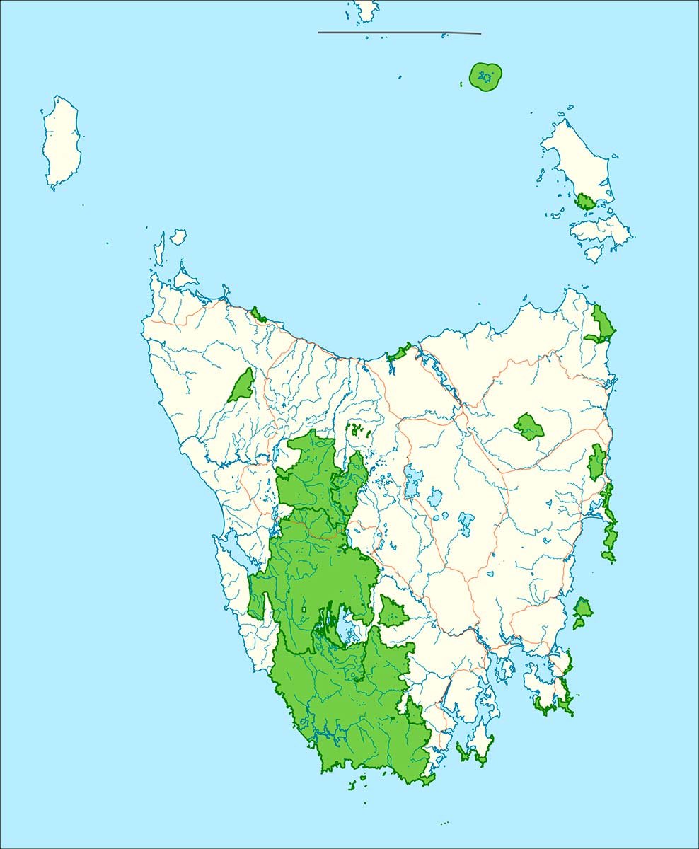 A locator map for all of Tasmania’s national parks. National Parks boundaries current as of 2017.