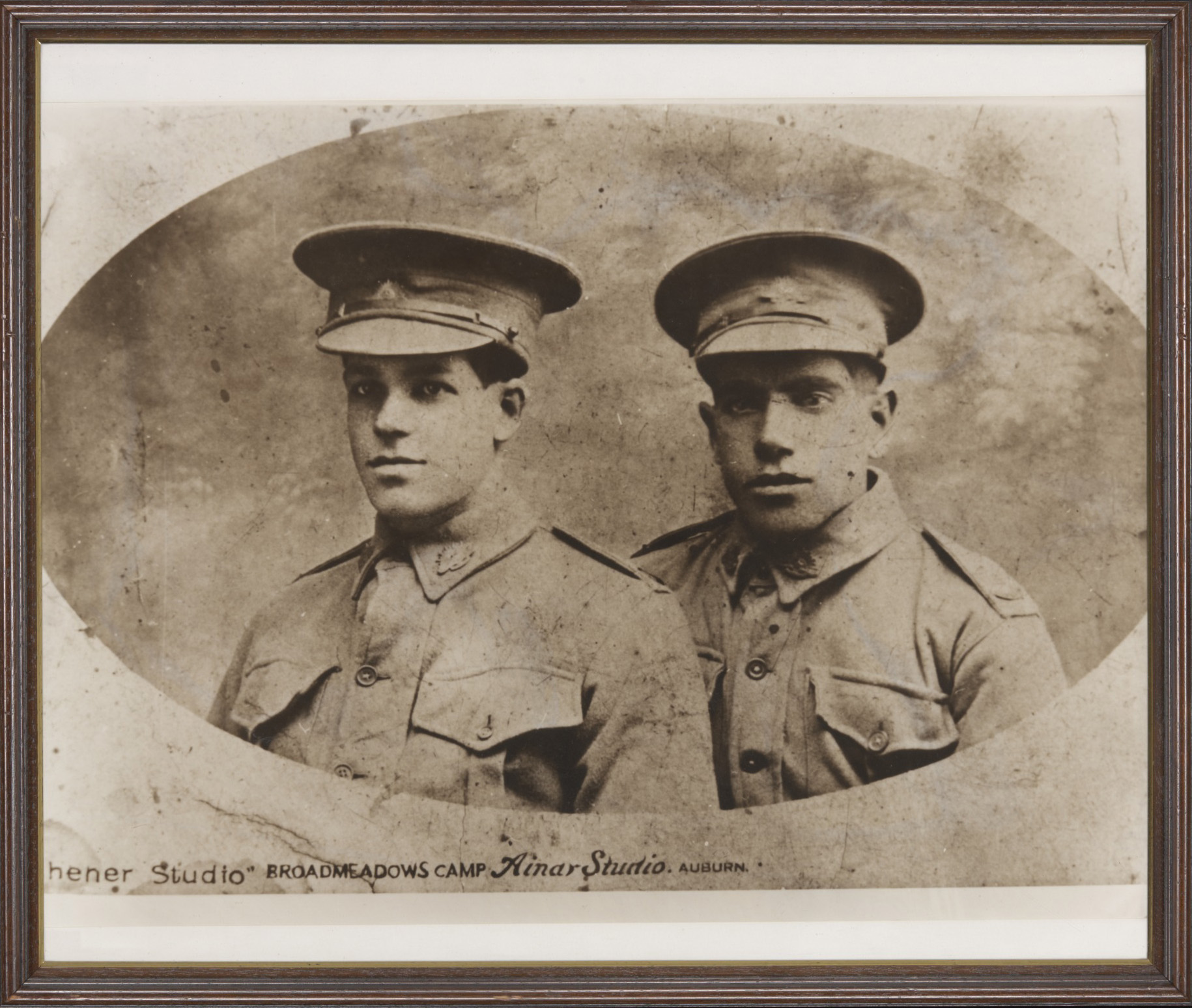 Henry Albert ‘Banjo’ Patterson and George Alexander, two First World War Aboriginal servicemen from the Coranderrk Aboriginal Reserve, Healesville, Victoria. Both enlisted in the 14th Battalion 16th Reinforcements at Royal Park in Melbourne. This photograph would have been taken in the latter part of January 1916, when they were sent for further training with ‘B’ Company, 22nd Depot Battalion at Broadmeadows.