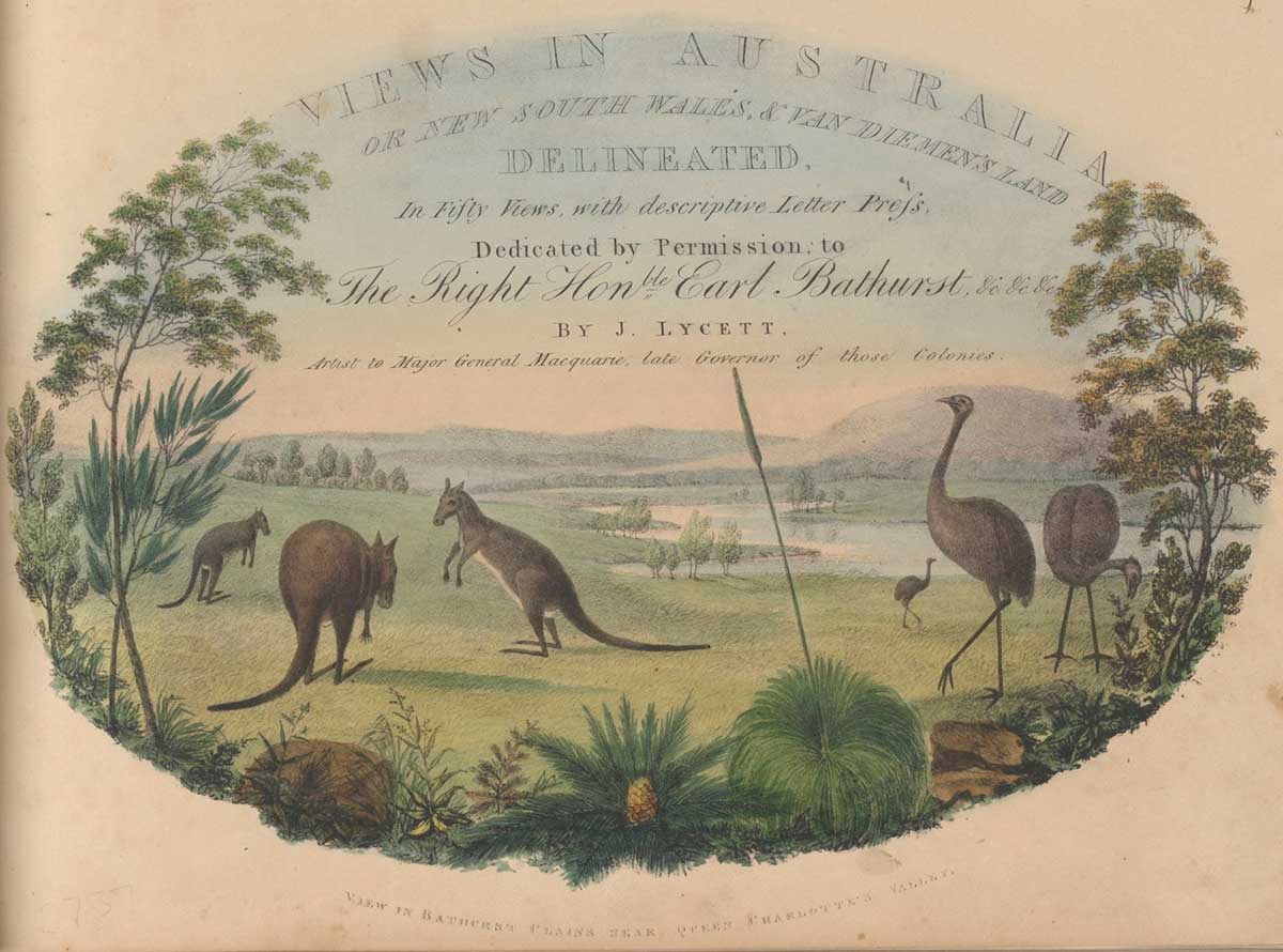 From Views in Australia colour plate book with plates taken from Joseph Lycett's drawings.