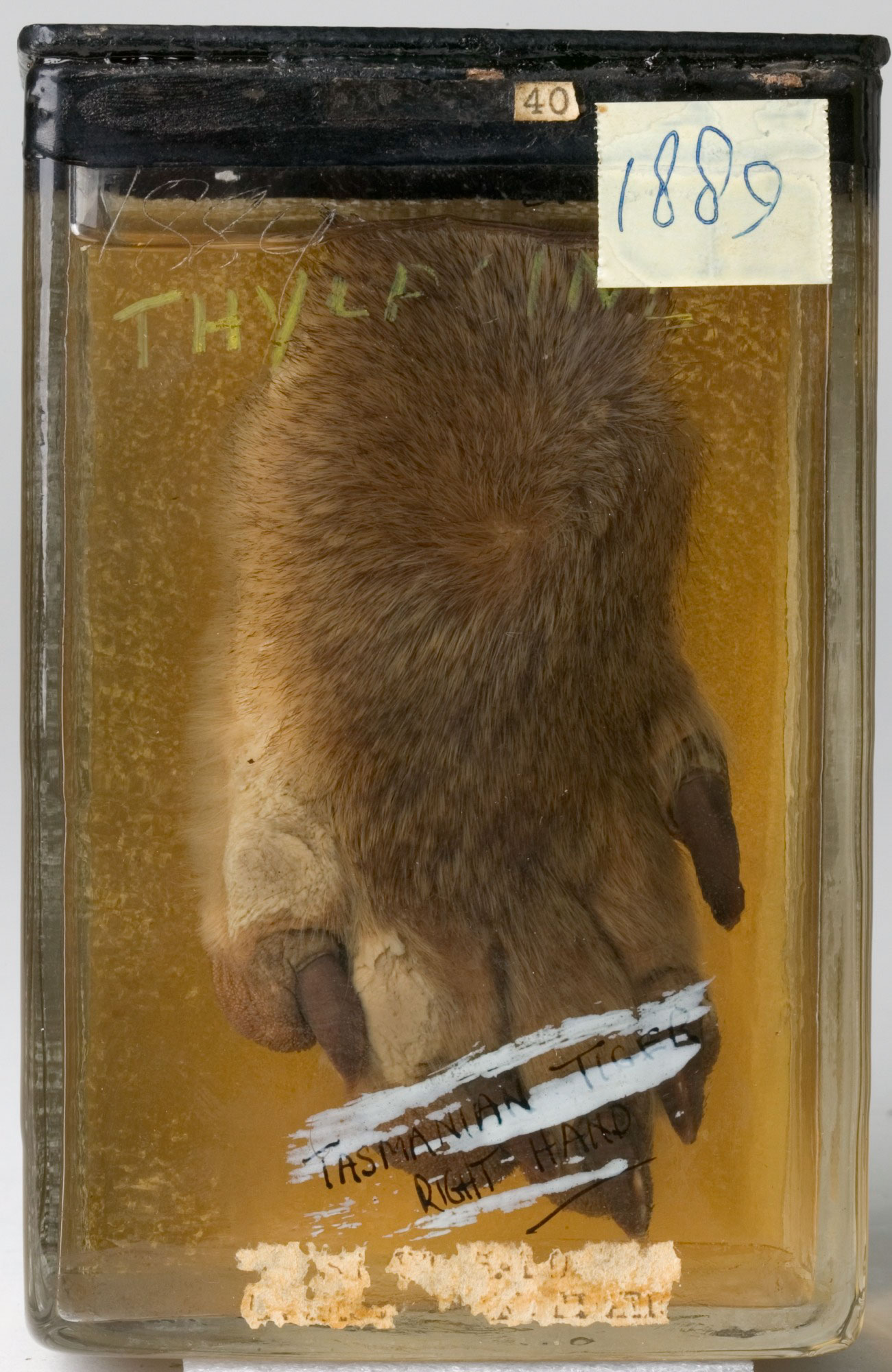 Wet specimen of a thylacine paw