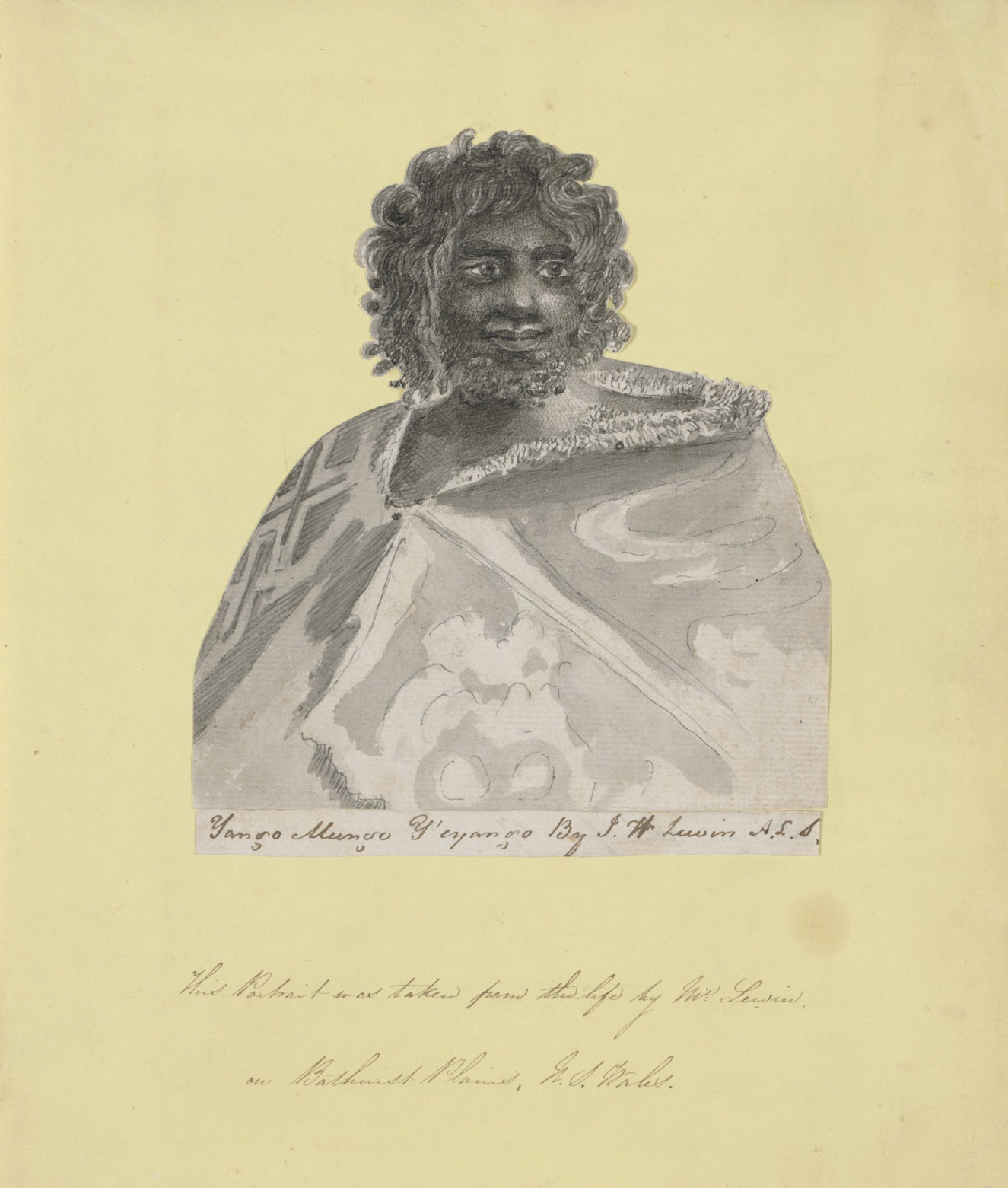 In 1815, free settler and artist John Lewin travelled with New South Wales Governor Lachlan Macquarie across the Blue Mountains, to establish the inland town of Bathurst. Lewin probably came into contact with Wiradjuri man Yango Mungo Y’eyango on that journey.